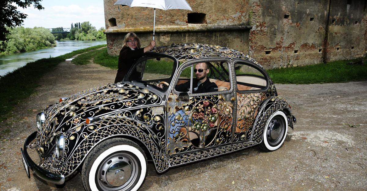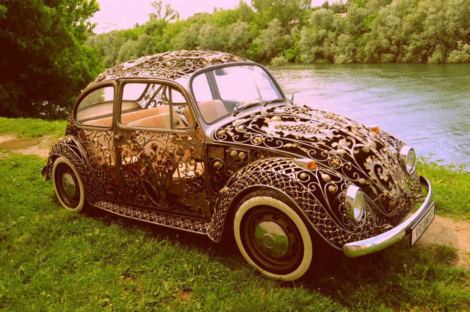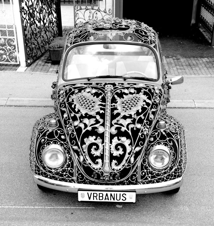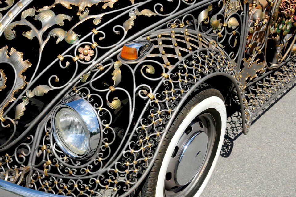 This is our take on the famous Volkswagen Beetle, handmade from wrought iron